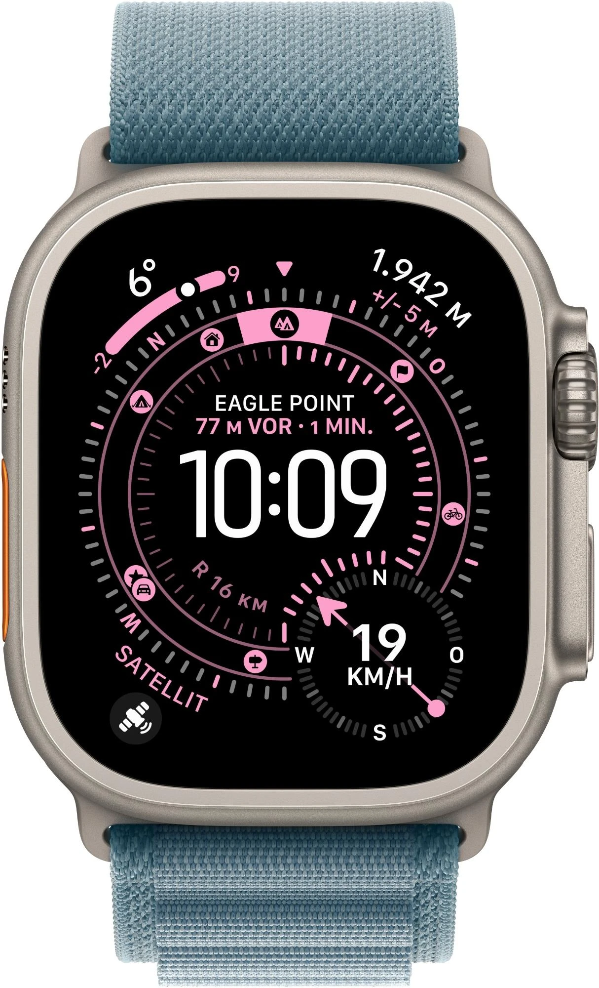 Apple Watch Ultra 3 Titan 49 mm GPS + Cellular (Trail Loop Blau/Hellblau M/L) Natur