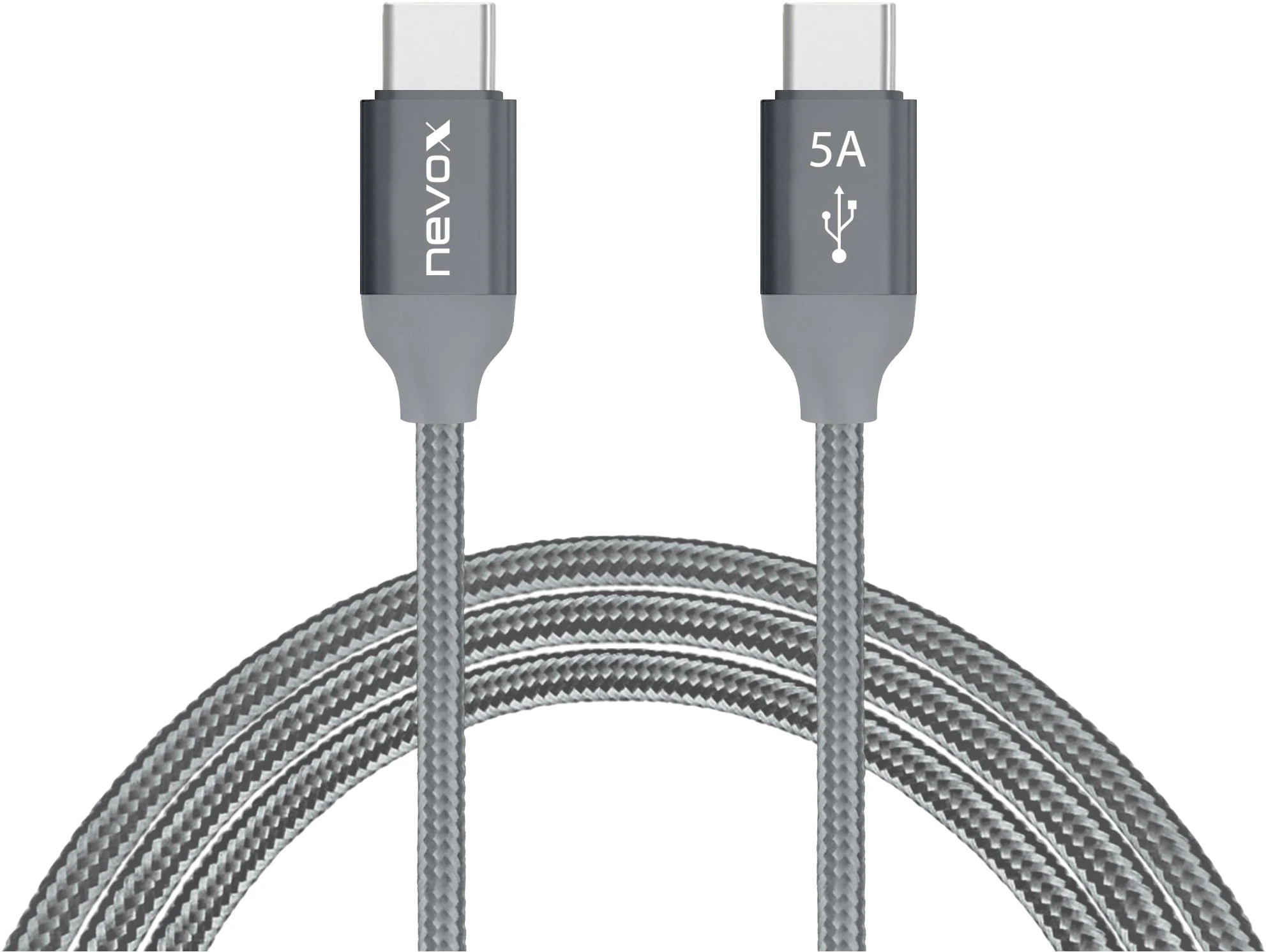 Nevox 2 m USB-C zu USB-C 2,0 Kabel 20V/5A (100W) Emark IC Silber Grau