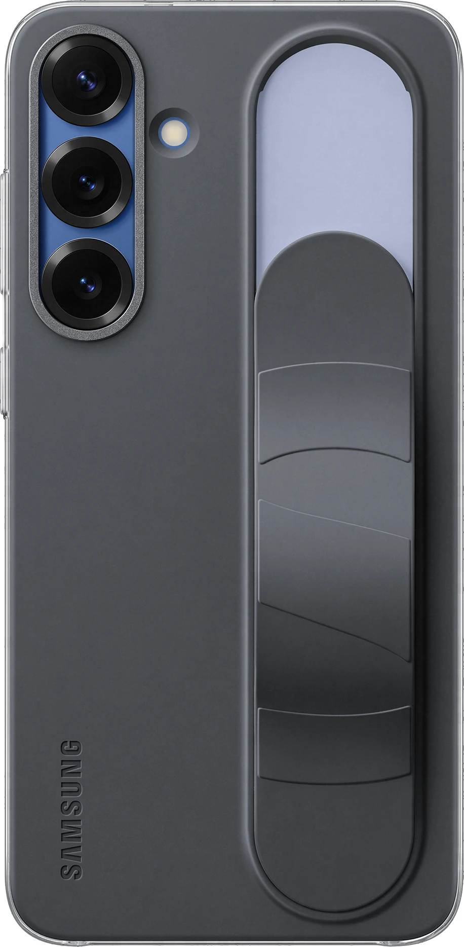 Mit dem Standing Grip Case liegt dein Galaxy S25 | S25+ | S25 Ultra komfortabel und durch das Band zudem sicher in der Hand. Willst du bequem Videos oder Fotos betrachten, kannst du das Band herunterdrücken bis es fixiert ist und so dein Galaxy Smartphone aufstellen und die Inhalte unbeschwert genießen. Das Material überzeugt mit einer weichen Textur, die sich großartig anfühlt. Das Standing Grip Case sieht nicht nur stylisch aus, sondern bietet auch Schutz vor Kratzern und bei Stößen – sowohl für